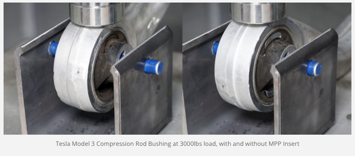 For those of you wondering about a solid bearing solution: In 2010 we developed a full spherical bearing for our Nissan 350z racecar, and that bearing continues to be in Kels to this day – 11 years later! MPP.R will release a similar design (in fact that 350z bearing can almost pop right into the Model 3), for those of you that are hard-core track focused drivers that aren’t concerned with NVH.