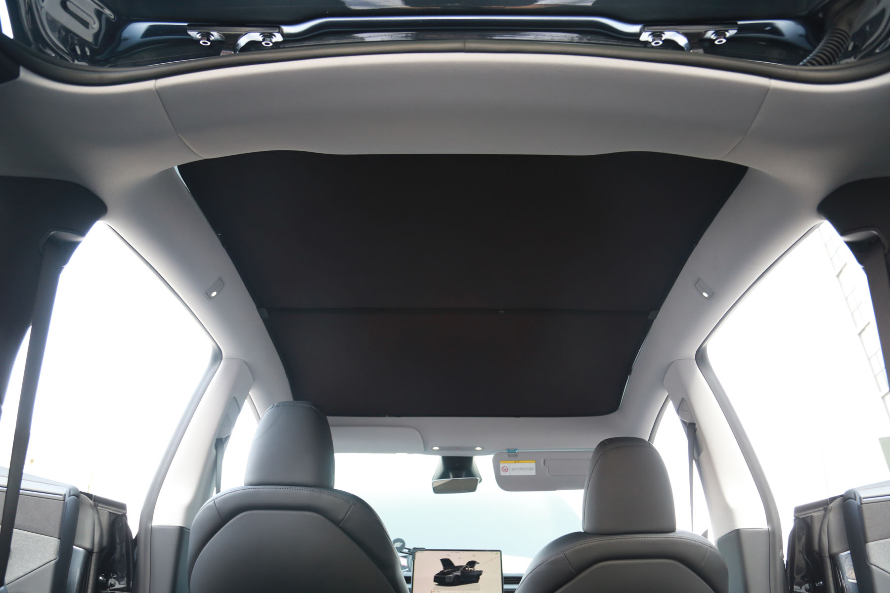 Solskydd / mörkläggning till taket på Model Y Juniper. Uppdelat i två delar för en stadig montering.