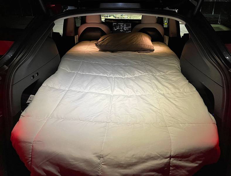 När madrassen töms på luft och rullas ihop får den plats i det nedre bagageutrymmet på Tesla Model 3 och Model Y (krävs dock att madrassen töms med pump för att detta ska fungera och att tömningen sker mycket noggrant).