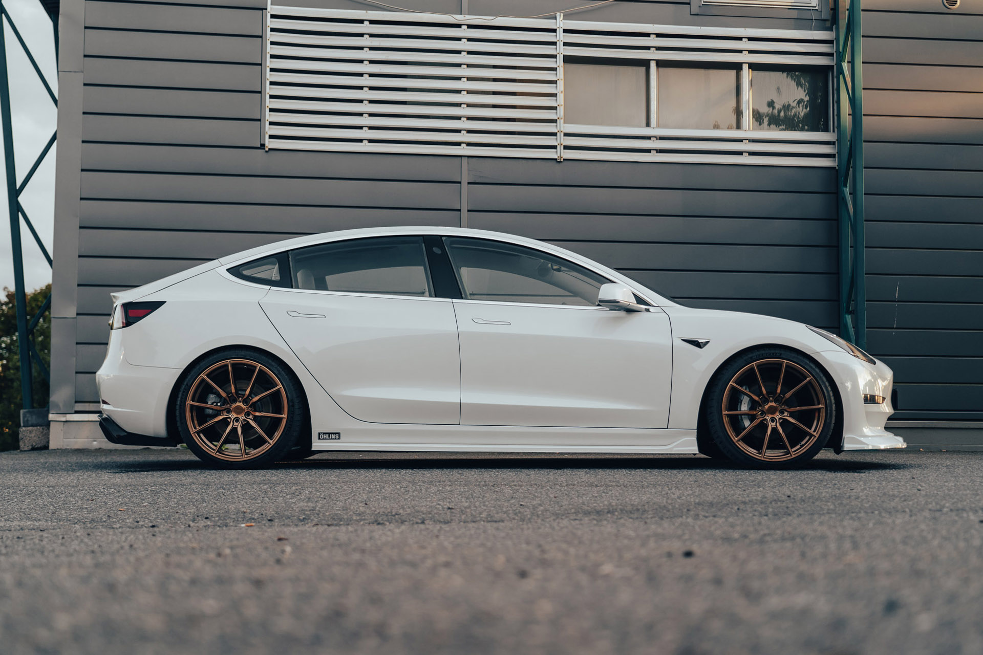 Concaver CVR4 20" staggered fitment med en bred och konkav bakfälg till Tesla Model 3. Concaver tillverkar sina fälgar enligt TÜV, dvs enligt branschens hårdaste kvalitets- och uthållighetstest.