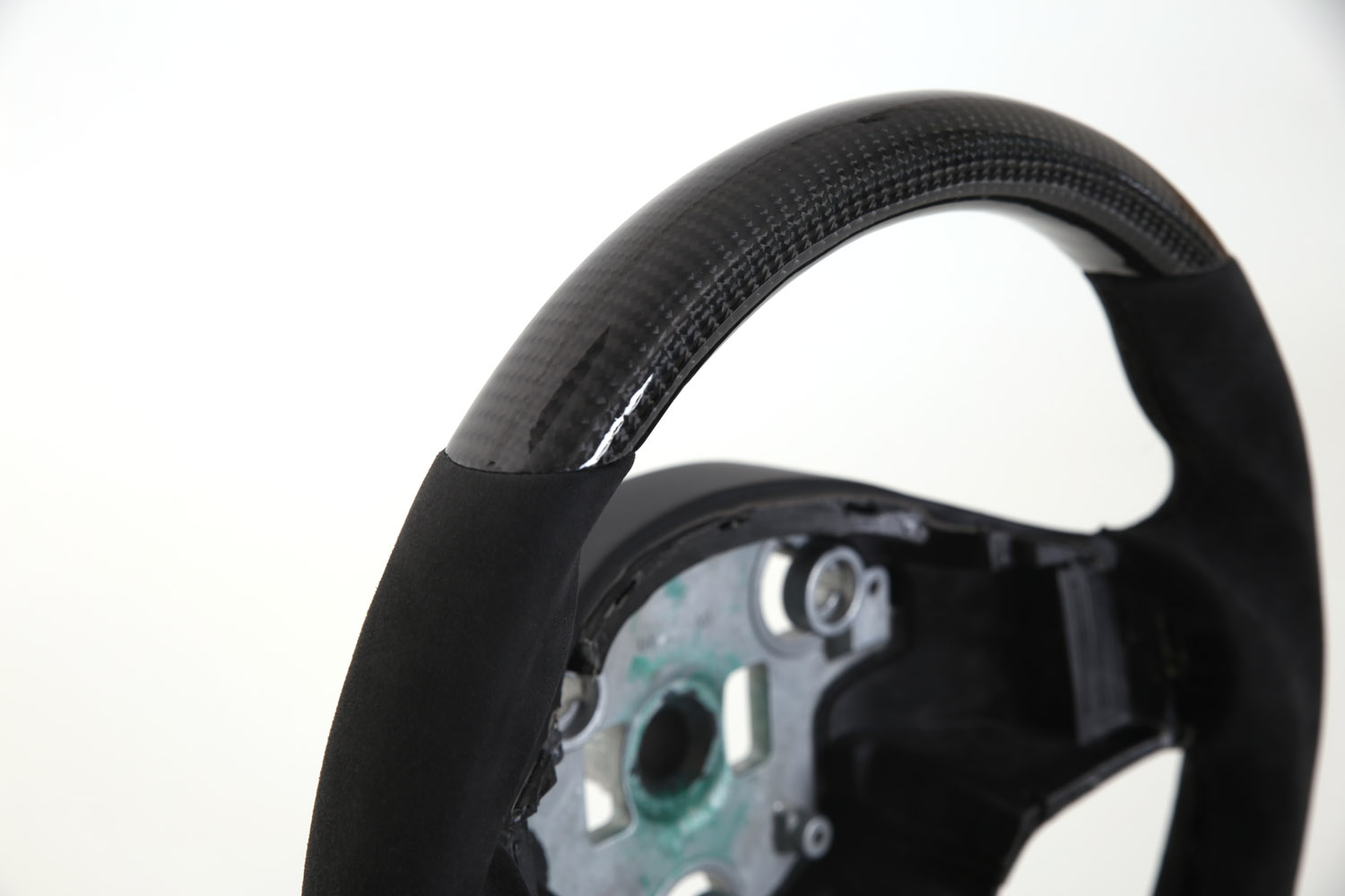 Utbytes ratt i riktig kolfiber och alcantara till Tesla Model 3 och Tesla Model Y. Ratten har ett riktigt trevligt grepp samt plan nederkant för att snyggt och sportigt utseende.