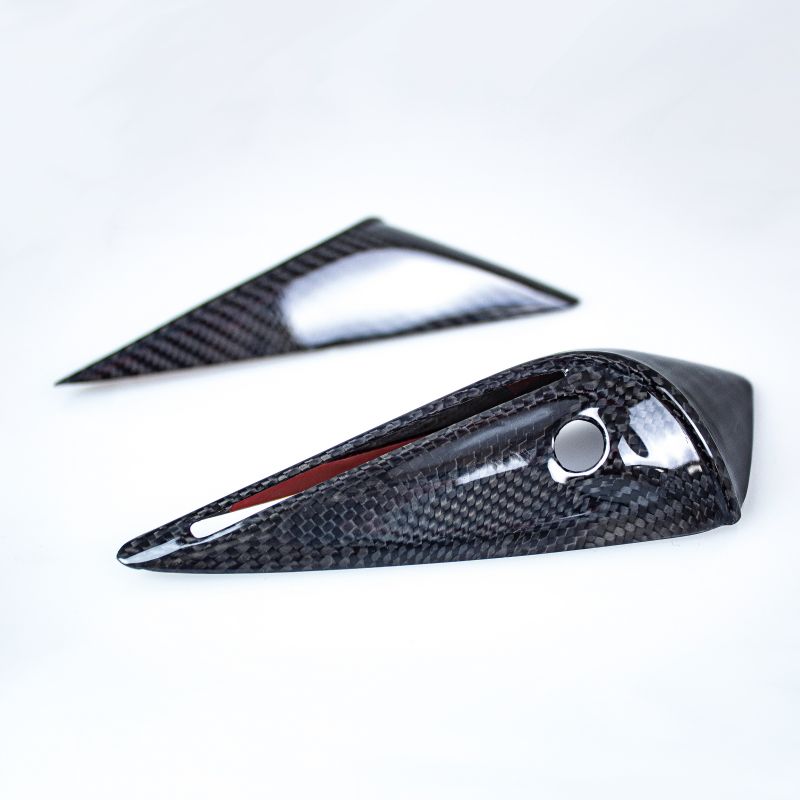 Dynotec heltäckande kolfiber-trim för sidoblinkers på skärmarna till Tesla Model S Plaid och Model S Long range från 2022+.