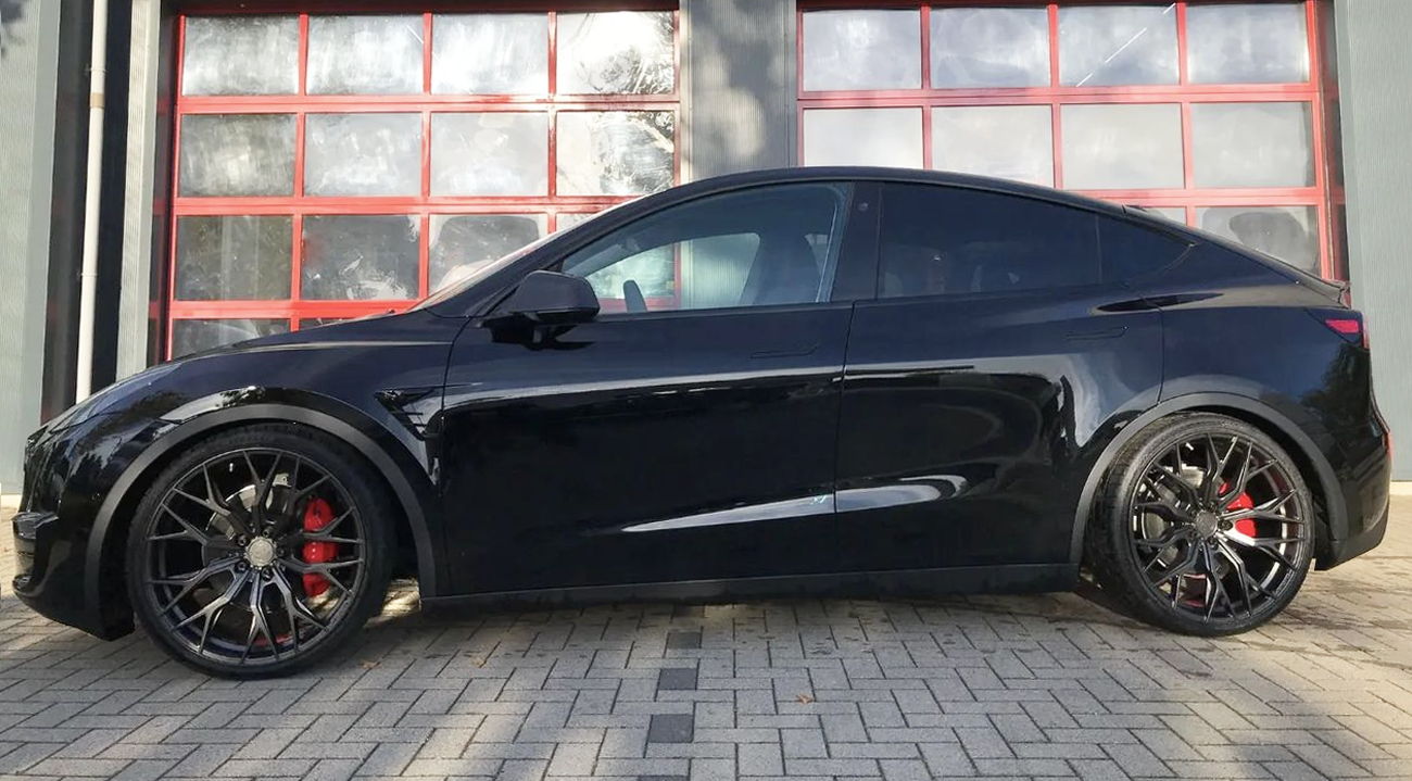 Concaver CVR1 22" staggered fitment med en bred och konkav bakfälg till Tesla Model Y. Concaver tillverkar sina fälgar enligt TÜV, dvs enligt branschens hårdaste kvalitets- och uthållighetstest.