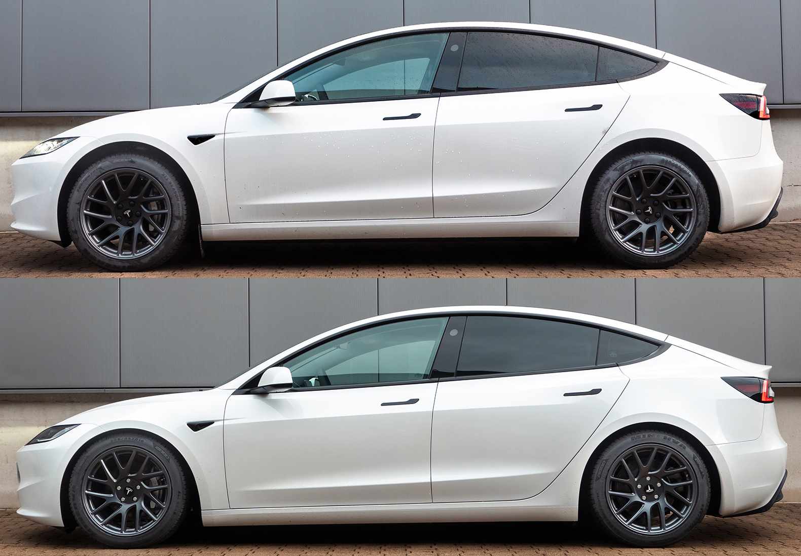 Satsen passar Tesla Modell 3 4wd med stålfjädring inkl Performance.
